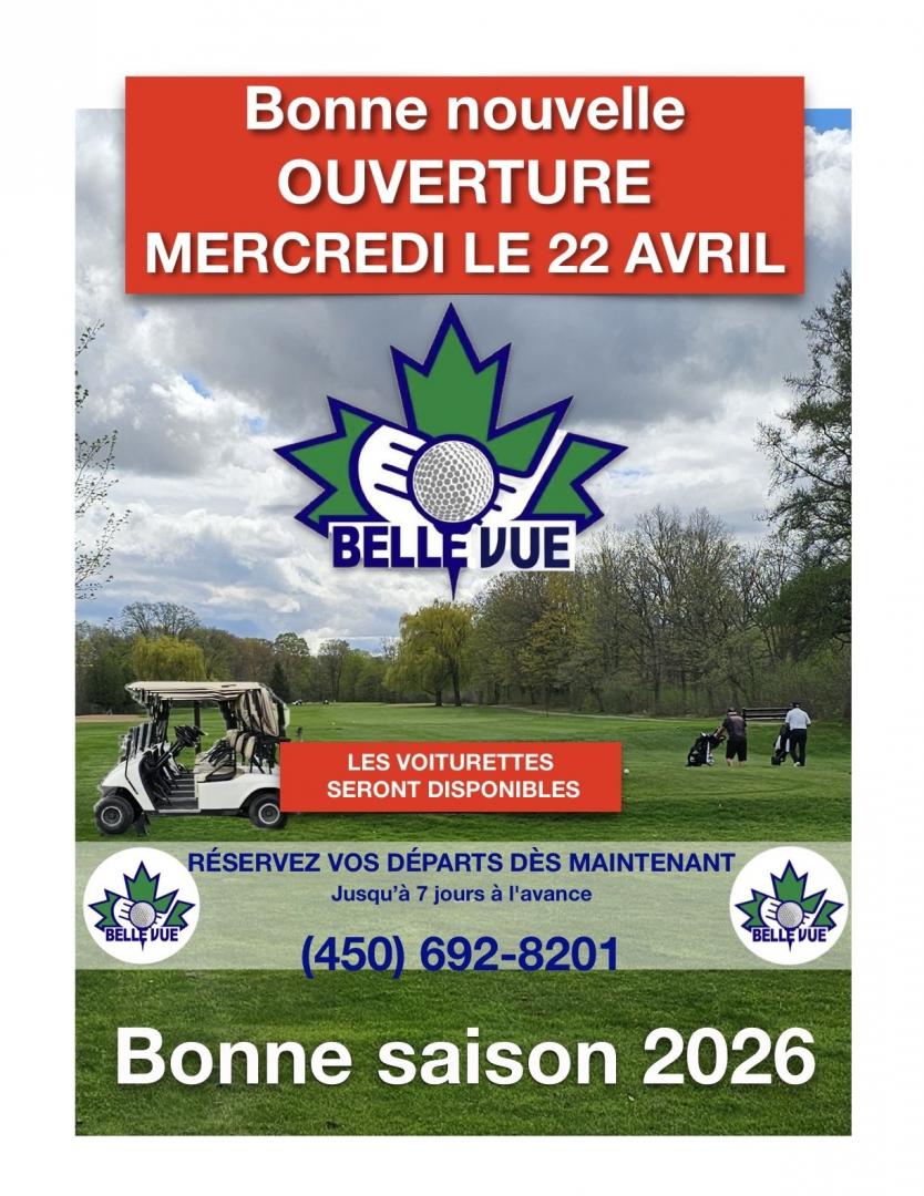 Fondé en 1929, le club de golf Belle Vue propose deux magnifiques parcours de 18 trous. Ces derniers se distinguent par des allées sculptées au cœur d’une vaste forêt d’arbres matures. Situé à Léry, en bordure de l’autoroute 30, le terrain est à vingt minutes de Montréal et à moins de trente minutes de Valleyfield et de Brossard. Ouvert à tous, les deux parcours sauront vous plaire et vous offriront des défis à la hauteur de vos attentes.