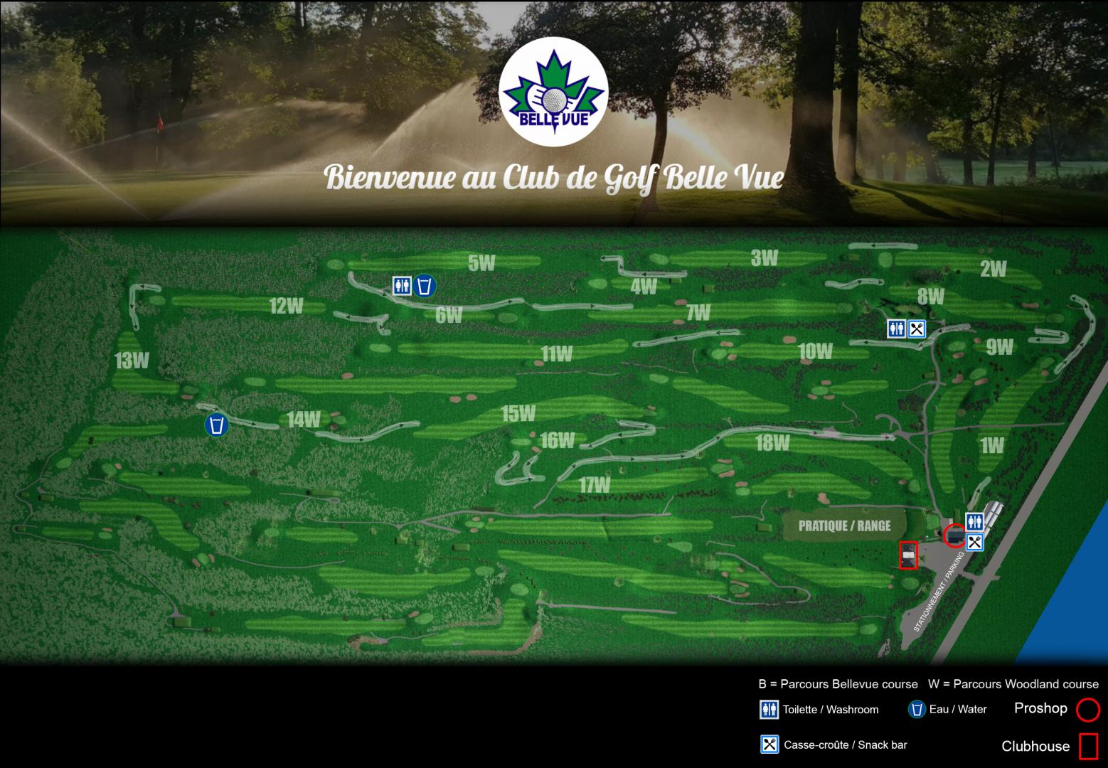 Le parcours Belle Vue, avec sa normale 72 est conçu pour offrir à la fois des défis techniques et stratégiques aux golfeurs de tous niveaux. Il comprend quatre trous avec normale 3 qui demandent précision et finesse. Les quatre trous normale 5 offrent des occasions pour de longs coups, mais ils sont souvent protégés par des obstacles comme des fosses de sable, exigeant une gestion précise de votre jeu. Les trous à normale 4 présentent un mélange de défis stratégiques et de puissance, en particulier avec des allées parfois étroites qui testent la précision.